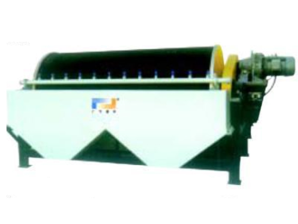 CTB(N. S)系列永磁筒 式磁选机磁场分旋转式、固定式两种机构,固定式主要适用于弱磁场湿式选别细颗粒的强磁性物质,或者除去非磁性矿物中的强磁性矿物,当浆流入磁场区时,其中强磁性矿物被吸附在圆筒表面,弱磁性和非磁性矿物被分选后排除,而吸附在圆筒表面的强磁性矿物随圆简的旋转被带出磁场区。旋转式适用于细粒强(中强)磁性矿物的干选,由于高速旋转的作用,使磁性颗粒的磁滚翻次数大大高于普通磁选机,这对于破坏磁团聚,提高富矿比具有显著的效果,矿物经分选后被分离成磁性物和非磁性物两种,分别从各自的排矿口排除该机适用于矿石粒度为6 - 0mm的粗选和精选。