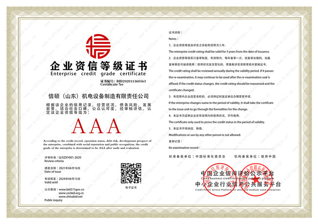 信硕(山东)企业信用等级证书
